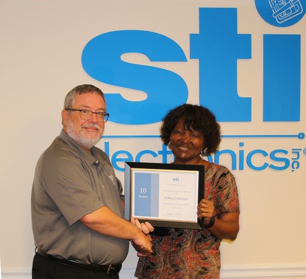 “Edna’s dedication to her craft is a tribute to herself and the company,” said Chris Cosgray, Manufacturing Manager. “STI holds Edna in the highest regard and we look forward to many more years of success with Edna on our team.”