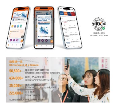 RX Connect is a proprietary Mini Program that offers exhibitors the convenience of digital communication, brand exposure, and tailored connections with trade buyers. Its Smart Directory feature provides visitors with easy access to target exhibitors and products, enabling real-time inquiries. In a way, you could call it an intelligent exhibition partner. Additionally, value-added features like Hot Events, Livestreaming, and Highlights Navigation are designed to further enhance the customer show experience.