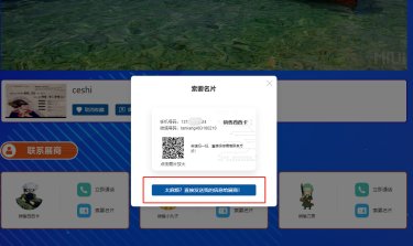 c) 索要名片:点击“索要名片”,直接获取该展商销售的名片信息。你可以使用微信“扫一扫”功能,扫描页面中的二维码,即可直接保存该销售信息。