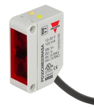 漫反射光电传感器可调背景抑制,范围:0-200mm、极性无红光625nm、电源10-0VDC,、NPN输出、N.O.和N.C、明暗开关、电缆连接、10x30x20mm外壳