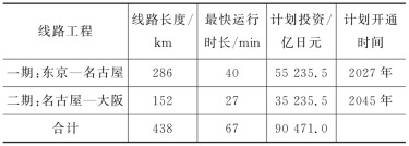 表2 日本高速磁悬浮中央新干线基本情况