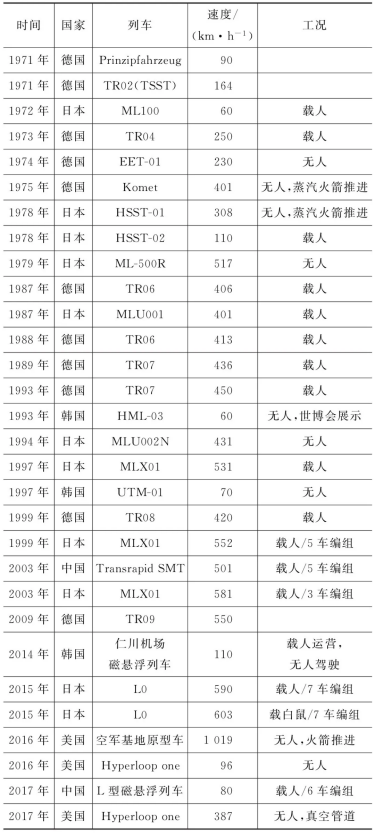 表1 各国磁悬浮列车试验速度一览