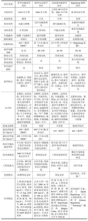 表3 4种磁悬浮列车的情况比较