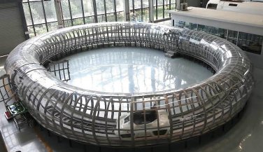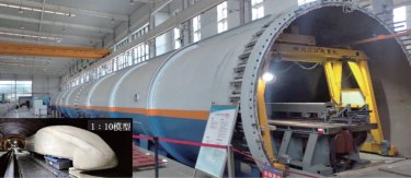 然而,任何科学研究都是需要分步实施,脚踏实地,一步一个脚印走出来的。故西南交通大学提出了“三步走”战略,通过不同速度等级的实验平台来研究这项未来技术的可行性。首先是第一步,为了验证真空管道加高温超导磁悬浮的原理可行性,2014 年,西南交通大学成功建成真空管道高温超导磁浮环行试验线“Super-Maglev”。如图5 所示,它的载体是高温超导磁悬浮车,环形管道长度为45米,直径为2 米,采用直线感应电机牵引和机械混合制动,实验极限时速为50 公里。环行线实现了在0.029 个大气压(相当于海拔约24000 米),超导磁悬浮车连续运行10 小时,验证了这项技术的原理可行性。到目前为止,环形线已安全运行了10 年,接待参观超15000 人次;第二步,为了提高速度,搭建了图6 所示的直线型真空管道高速试验台。这里所用的模型比例为1∶10,管道直径为4.2 米,悬浮高度为10~20 毫米,管道内最低气压为0.05 个大气压(相当于海拔约20000 米),最高实验速度可达每小时430 公里。最后一步,为了进一步提升速度,现阶段西南交通大学正在搭建最高试验速度每小时1500公里的超高速试验平台。这个平台管道直径3米,线路长度1600米,真空度为0.005 个大气压(相当于海拔35000 米),模型比例1∶8,将用于研究超高速和低气压环境下超导磁浮模型车的悬浮和稳定运行特性。