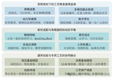 传统工业生产依赖固定产线与预设流程,适合单一产品大规模制造,但难以应对多样化和定制化需求。现代工业要求产线具备更高灵活性,依托工业之手实现快速调整与柔性操作,适配不同产品与工艺变化。本节将从通用控制策略学习、交互表征设计与决策基础模型3方面,探讨工业之手在可变产线下的柔性操作方案。