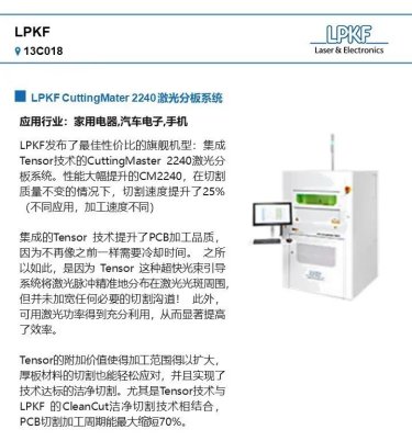 本期新品采购指南,镭晨智能、富士德、LPKF、松下、维嘉科技、铁蜗牛、富滤业、荣亚物联将带来在线PCBA插件光学检测设备、Fuji SmartFAB、激光分板系统、活用视频追溯改善生产业务解决方案、在线分板机、7046、漂洗废水处理设备、智能仓储拣货标签等在家用电器及其他领域的新技术及解决方案。