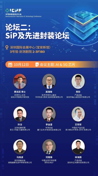 半导体制造技术大会——论坛二:SiP及先进封装论坛 2023年10月12日3号馆,封测剧院2,3F180 |