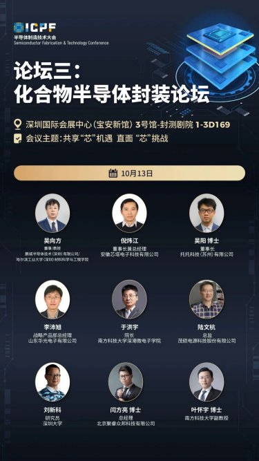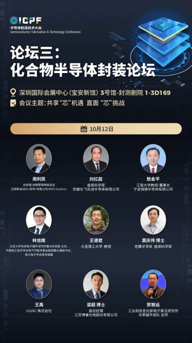 半导体制造技术大会—— 论坛三:化合物半导体封装分论坛 2023年10月12-13日3号馆,封测剧院1,3D169 |
