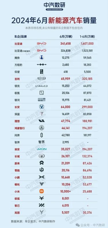 根据中汽数研,7月1日多家车企公布新能源汽车销量,比亚迪以24.17万辆的佳绩排名榜首,造车新势力厂商也展现了不俗的实力,其中,理想汽车在6月成功交付了47774辆新车,极氪品牌更是创造了历史性的高峰,首次在一个月内交付了超过2万辆新车。小鹏汽车也展现出了复苏的迹象,6月交付了10668辆新车。备受瞩目的小米汽车也不甘示弱,宣布在6月交付了超过1万辆新车。