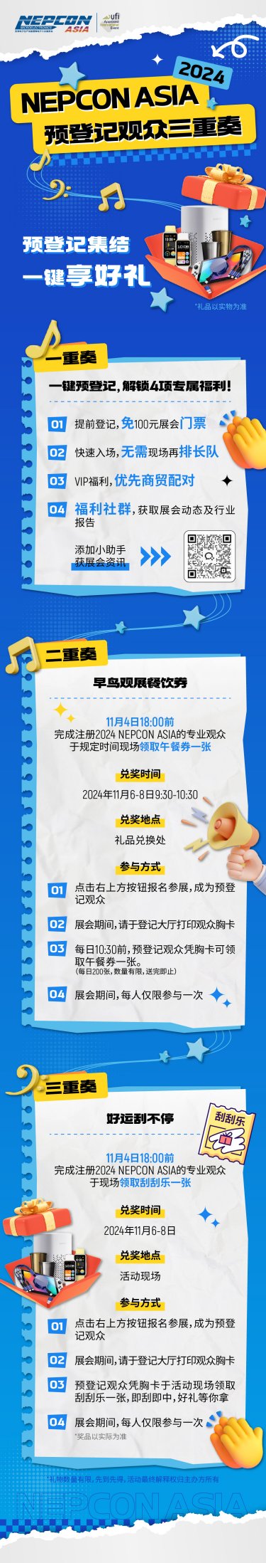 @所有观众,速来领取NEPCON ASIA预登记三重福利,好礼不停歇!