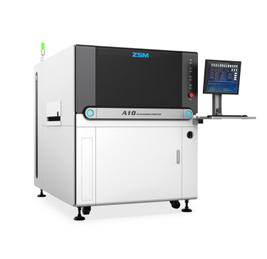 A10主要应用于miniLED、半导体、手机笔电和军工医疗领域锡膏等流体印刷工艺,能完美满足03015、0.15Pich等密间距,高精度工艺要求。具备自动加锡、收锡、自动换钢网、自动钢网堵孔检测、自动换顶PIN、与SPI联动、整机恒温恒湿等实用功能。
