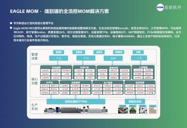 深圳市易联软件科技有限公司作为一家专业的智能制造整体解决方案的国家高新技术企业,公司总部位于经济特区深圳市南山区,并在苏州、武汉、长沙、赣州等区域设有客户服务中心,我们拥有10年以上MOM 项目经验,通过了数十家上市公司的项目实践,同时积累了多项海外项目落地经验。易联软件凭借强大的研发实力,推出了从原材料到成品端到端的智能制造整体解决方案。Eagle MOM/MES系统采用先进的.NET Core微服务的跨平台框架、前后端分离技术、BS+CS混合架构、Open API开放接口、组件化开发配置,快速匹配不同行业、不同企业的数字化需求,提高企业市场竞争力!
