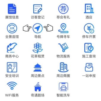 扫描二维码进入展馆小程序,点击导航,进入展馆导航界面,展商可自由定位规划展馆区域内的导航路线。