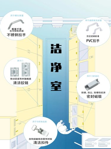 世嘉智尼有大量适合半导体机械设备制造无尘车间(洁净室)的五金配件产品。可有效减少金属之间的摩擦力,防止灰尘飞溅,协助您打造安全·安心,符合标准的无尘车间。