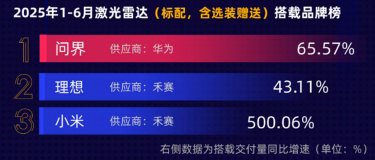 4、汽车电子-激光雷达:1-6月激光雷达前装搭载交付104.39万颗,仍保持高增速