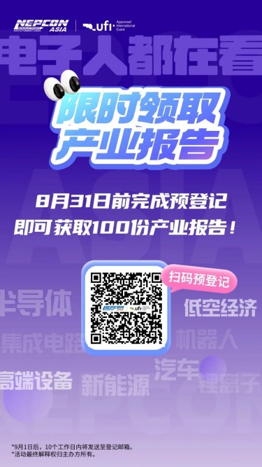 🎫即日起至8月31日,完成预登记即可领取100份产业报告及图谱,涵盖低空经济、机器人、半导体、计算机、储能、高端装备、集成电路、锂离子电池、汽车、人工智能、碳中和、新能源、充电桩等领域。