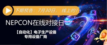 采购贴片机、固晶打线机、三防涂覆设备、双伺服丝印机、清洗机等,8月29-30日NEPCON线上采配会等您接单!