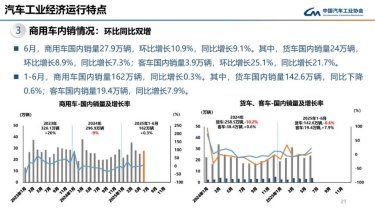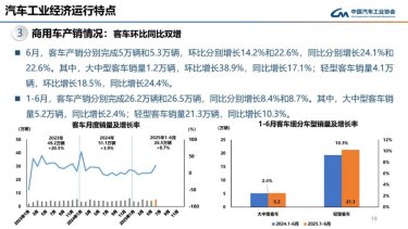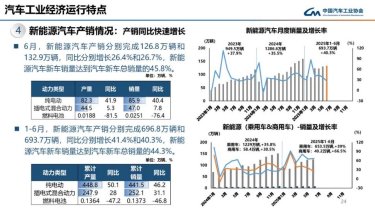 据中国汽车工业协会分析,今年以来,国家实施更加积极有为的宏观政策,加快落实稳就业稳经济推动高质量发展若干举措,经济运行总体平稳。上半年,汽车市场延续良好态势,多项经济指标同比均实现两位数增长。具体来看,在以旧换新政策持续显效带动下,内需市场明显改善,对汽车整体增长起到重要支撑作用;新能源汽车延续快速增长态势,持续拉动产业转型升级;出口量仍保持增长,其中新能源汽车出口增长迅速;中国品牌销量占比保持高位。