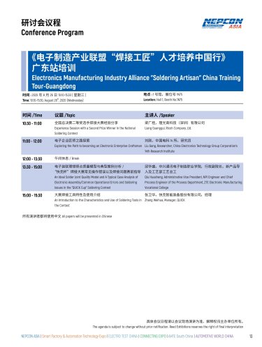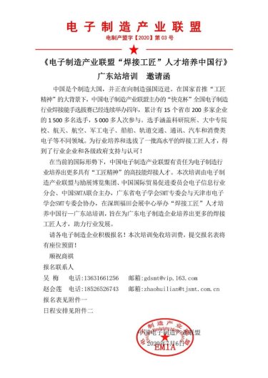 在当前的国际形势下,中国电子制造产业联盟有责任为电子制造行业培养出更多具有“工匠精神”的高技能焊接人才。本次培训由电子制造产业联盟与励展博览集团、中国国际贸易促进委员会电子信息行业分会、中国SMTA联合主办,广东省电子学会SMT专委会与天津市电子学会SMT专委会协办,在深圳福田会展中心举办“焊接工匠”人才培养中国行—广东站培训,旨在为广东电子制造企业培养出更多的焊接工匠人才,助力行业发展。
