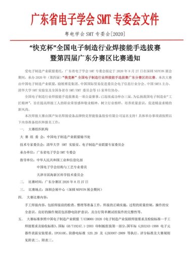 2020“快克杯”全国电子制造行业焊接能手选拔赛 广东分赛区比赛通知